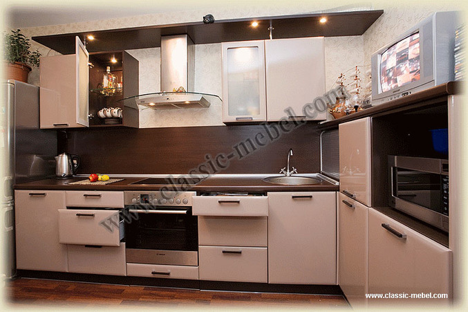 Во - первых стиль не тот, цвет, да все не то! Двери поменять вообще не вариант, т.к. у нас заходишь в дом и сразу четыре двери, одна из которых ведет на кухню. Что делать, подскажите пожалуйста очень прошу. Плитку сдать тоже не вариант,т.к. нравится и уже больше месяца прошло. Я предлагаю с настенной плитки убрать декор,оставить просто бежевую плитку и заказать типа такой кухни