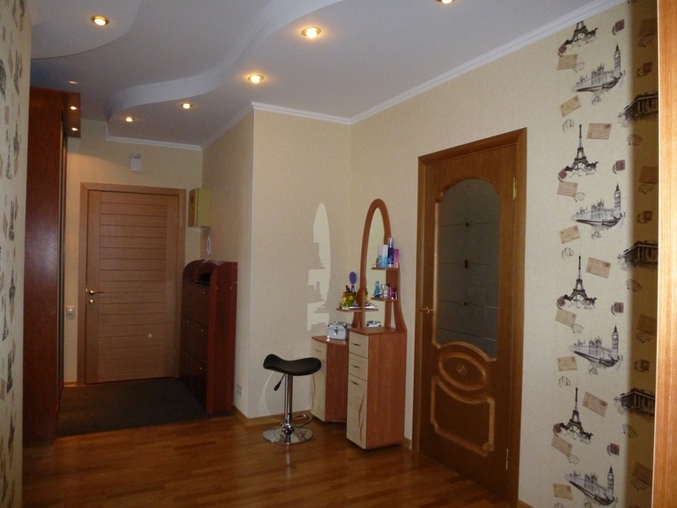 Так выглядит коридор. Сверху света много. Но когда он не включен, нужно подсветить зону трюмо. Когда красишься, темновато.