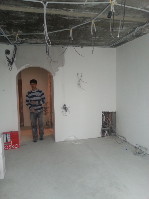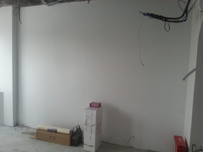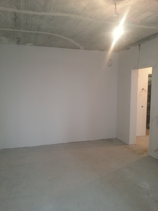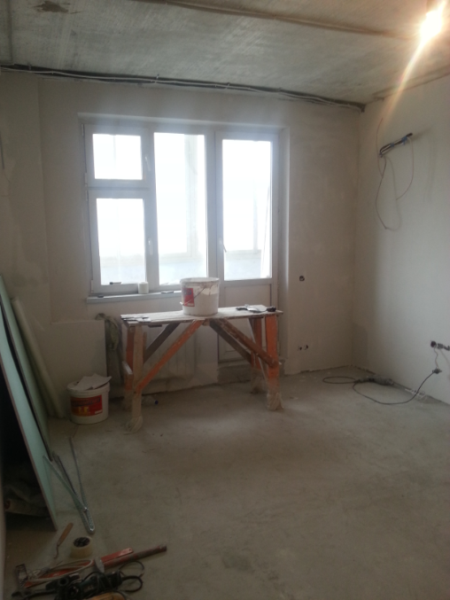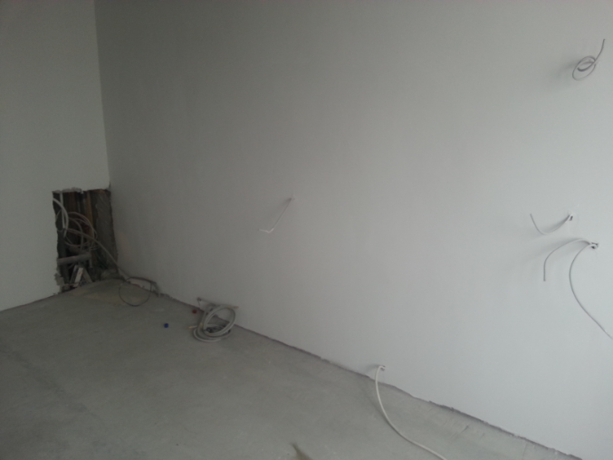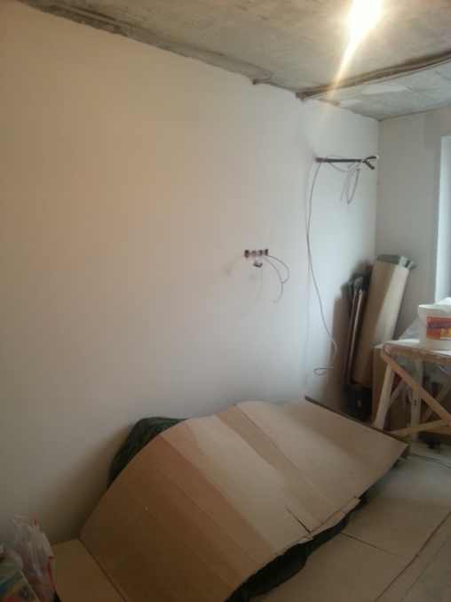 Ванная. Вид на стену где будет душ кабина и унитаз подвесной.