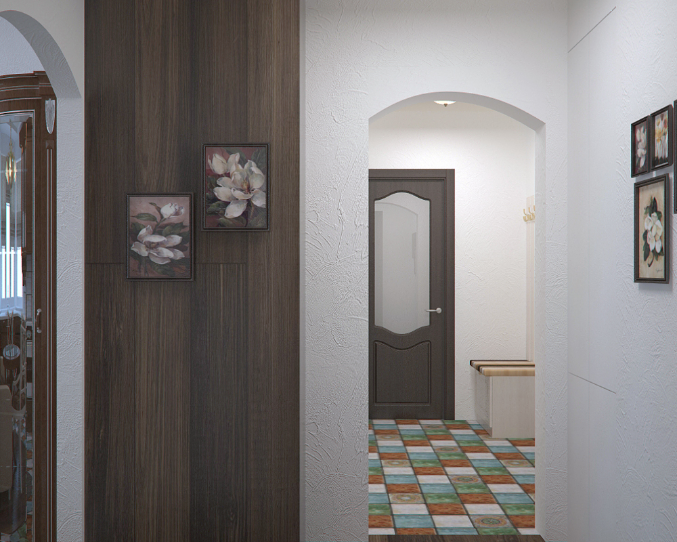 Это прихожая и малый коридор.Мебель на эскизе условная. Часть мебели у заказчицы имеется.