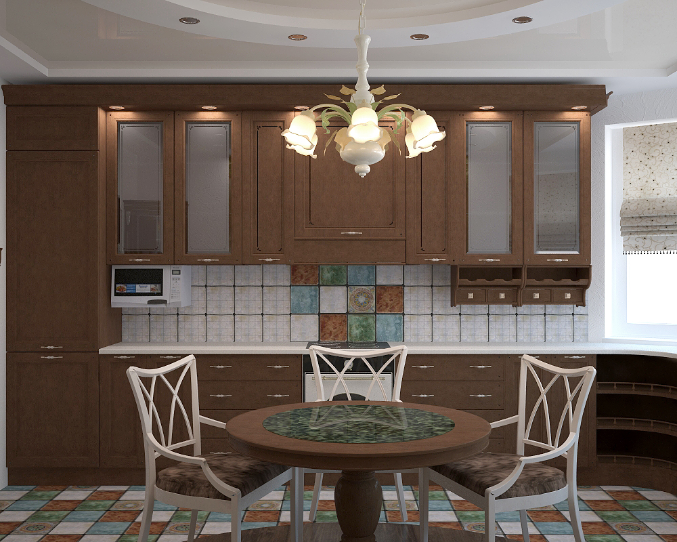 Кухню будем заказывать в последний момент. Фартук ,думаем, сделать из мозаики коричневой, но если напольной цветной плитки останется много, то сделаем из неё фартук. К сожалению процесс установки кухни не застану