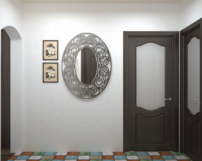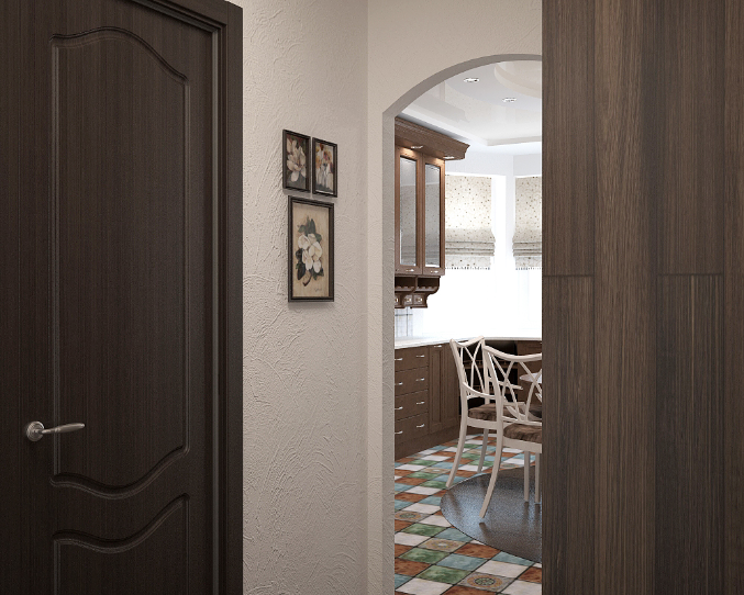 На стене планируется паркетная доска (такая же как и на полу в кухне и малом коридоре)