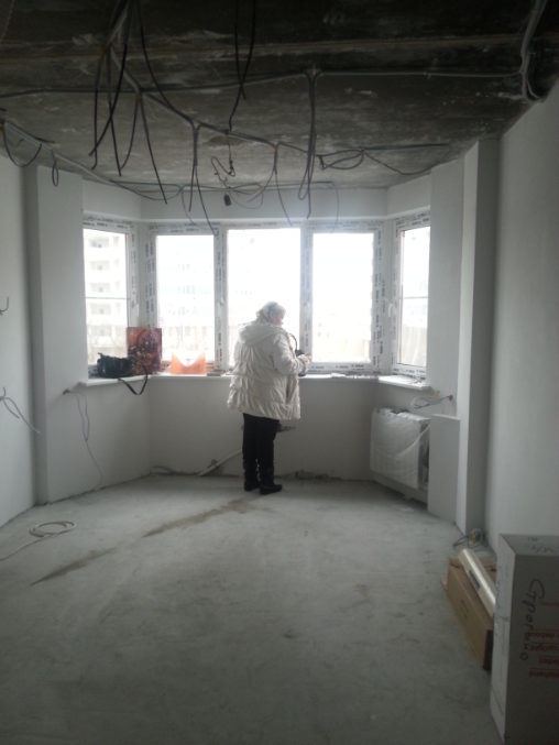 Кухня. Вид на окно. Страшные провода с потолка - это наши будущте красивые светильнички))