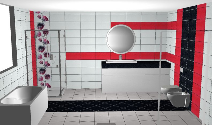 Интерьерное решение ванной комнатыДевочки, вопрос собственно вот в чем, на полу комбинирования плитка, основной цвет белый, в центре черная полоса, на стенах, плитка, красная, белая и черная, плюс пано. Какую делать затирку?? Всю голову сломала, помогите..