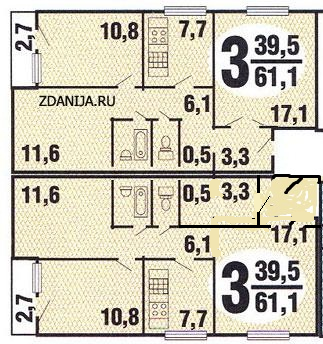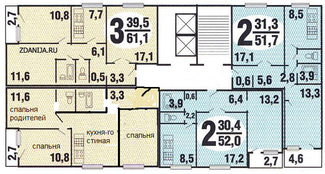 Подскажите, есть у кого варианты перепланировки вот такой трешки (нижняя)? Хочется как-то обыграть или избавить от длинного каридора-кишки)