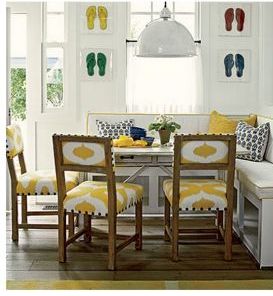Еще по обеденной группе, если делать светлый цвет стен, то группу лучше сделать в сером цвете, вот нашла интересный пример под ваш интерьер + подушки мягкие полосатые добавить.