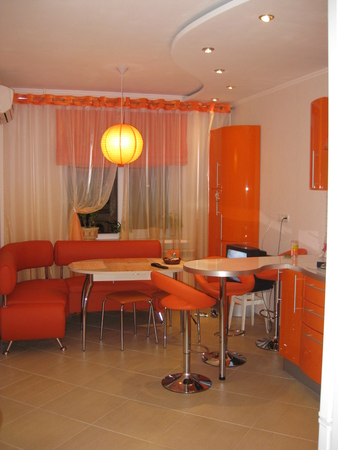 у нас уже 2 года оранжевая кухня, правда мы ее разбавили серым и стол со стульями старые еще , да и кухня всего 5 метров, но вдруг пригодится)))
