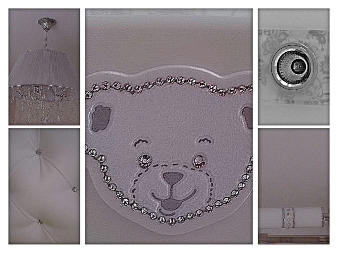 Все должно быть в гармонии!!! Всего в меру! Ну у нас все в стразах, даже на гардине и на кроватке))))) Не вычурно, гламурненько так, свежо=))