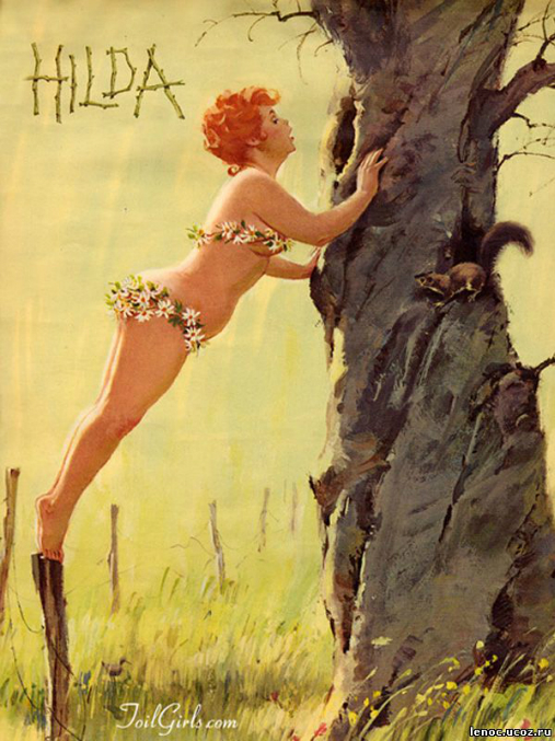 Тем не менее раз решила, значит, надо делать. А решила напечатать кучу открыточек с ней 10*15 и развесить на даче в рамочках соответственно теме рисунка. Т.е. на кухне повесить кушающую Хильду, в спальне - спящую, в душе - моющуюся и т.д.