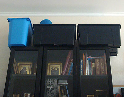 Еще один огромный контейнер на 65 л не поместился в квартире, пришлось спрятать его в пожарный шкаф в подъезде: