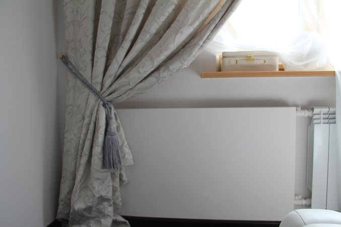 вот смотрите,эта фотка спальни,а в зале он еще больше (короб) и если вешать шторы,чтобы спрятать короб,то еще + 5 см придется от коробоа отступать.... т.е. от батарей 15 см будет ...это прилично,я бы сказала даже до фига! ОЧЕНЬ много места съестся! некрасиво будет. поэтому закрывать короба - у нас вообще не вариант!