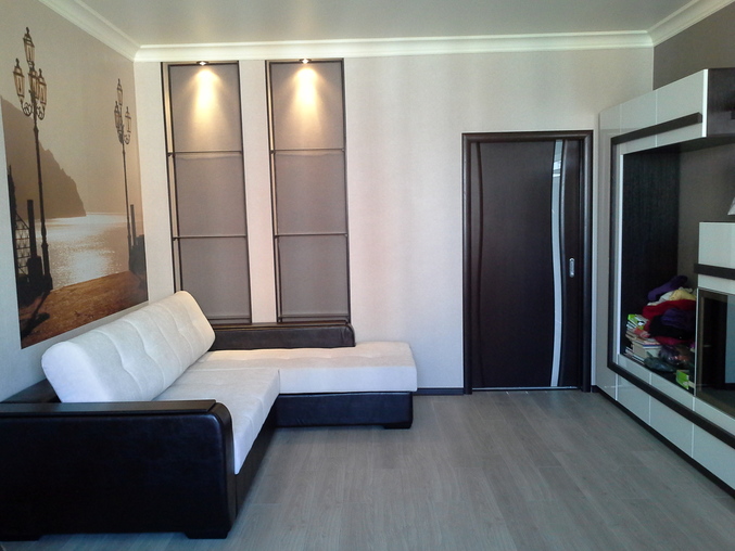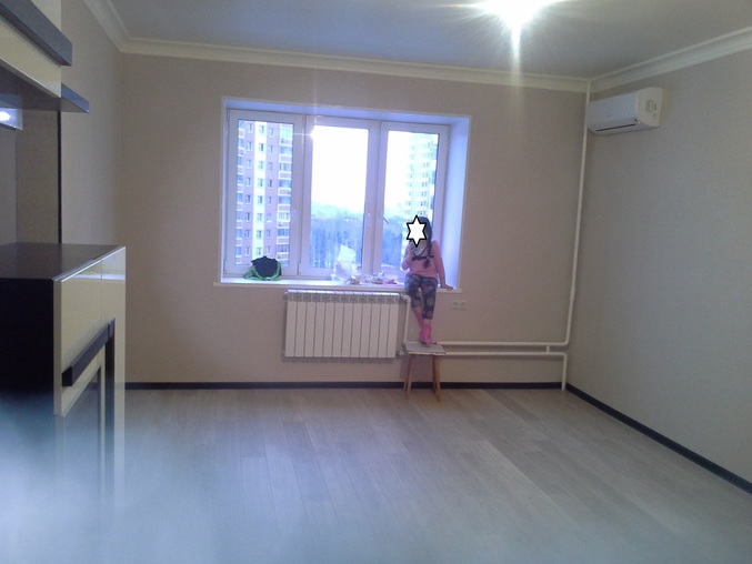 Ее половинаПо одной стене где кондей 3м(до нашего дивана.,напротив 2,2и дверь.Как думаете, кровать вдоль батареи нормально будет???