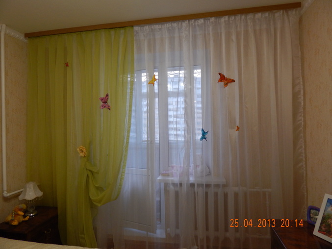 И ещё - ни в коем случае не вешайте белые шторы.....................это ужас как тупо смотрится, особенно с белым тюлем. У меня просто одна знакомая так сделала и безумно пожалела. Смотрятся как белые шёлковые простыни на окно повешанные, а она не дешёвые покупала, с деньгами у неё нет проблем.