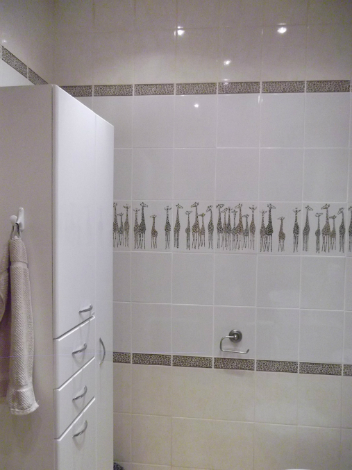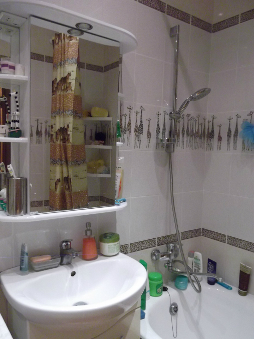 Да, плитка с жирафами крутая! Но я бы заменила занавеску для ванной (на белую или в цвет стен, короче, светлую)и шкаф в прихожей очень уютный, прям залезла бы в него и сидела :)