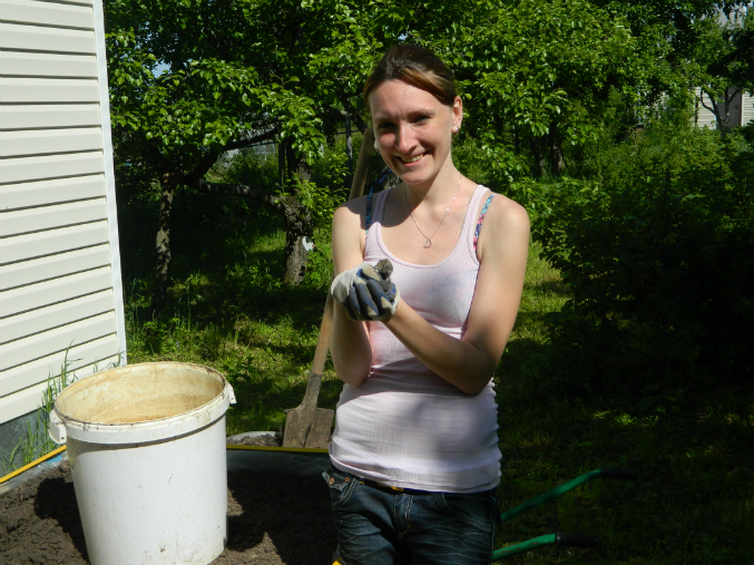 Потом накопали и привезли 6 или 7 тачек хорошей земли с поля. Долго я с ней занималась и вытаскивала корешки и траву.