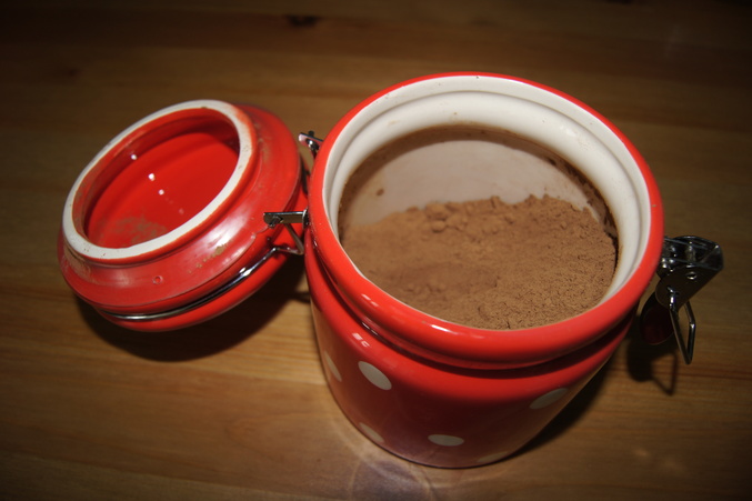 Вот эту красную в горошек, например, увидела совершенно неожиданно в магазине и конечно же сразу купила. Храню в ней какао )