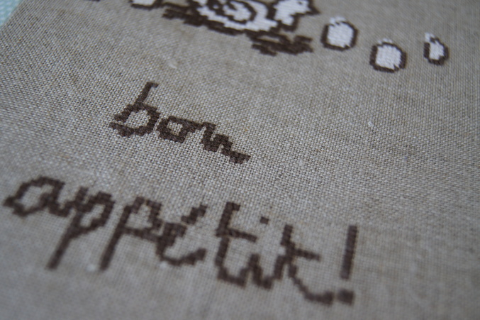 Н льне вышивала первый раз, кстати. Но результатом очень довольна. Краешек и задняя часть подобрана под наши обои на кухне )