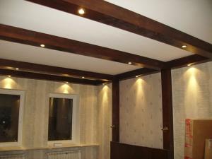и к стати, балки не обязательно дожны быть симетричны, и эту балку, которая вам не нравится ни в коем случае не красьте в светлый оттенок, отличный от других балок, тем самым вы ее не скроете а выделите еще больше.
