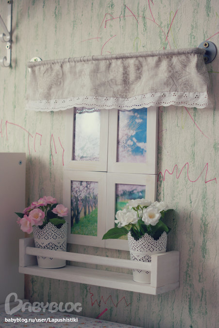 Шторка на натянутой резинке. На боковые стенки крепятся шурупы, на них привязывается самая обыкновенная тонкая резинка с надетой на неё шторкой, всё это максимально натягивается и в конце закручиваются шурупы. Не очень понятно объяснила, но делается всё просто)))