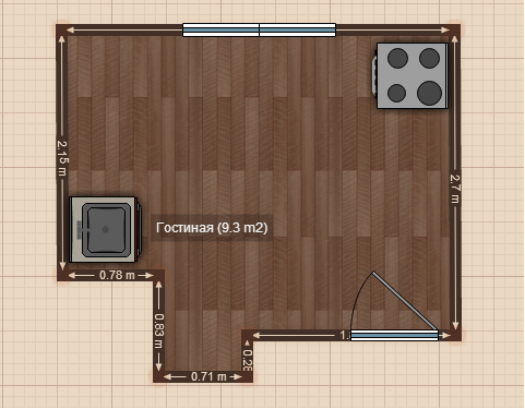 Стена с окном какой длины? Высота окна от пола? Размеры стен по обе стороны от окна. Столовая группа планируется, на сколько человек?