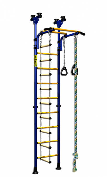 Этот спорткомплекс хорош, если потолки твёрдые и не слишком высокие, можно поставить в любом месте. Для нашей квартиры годятся только пристенные конструкции.