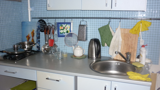 Вопросы и ответыИтак, у нас имеется бледно-голубой гарнитур, доставшийся от прежних хозяев ( денег на мега-ремонт нет,нужно выкручиваться подручными средствами) + серая столешница. Мы купили ко всему этому стального цвета холодильник и посудомойку. Обои наклеили белые с синим рисунком ( а-ля гжель, от которого я решила плясать). Полы и стол темного цвета - что-то около венге чуток посветлее. Фартук светло-голубая однотонная мозаика. Все в принципе мне нравится. Только нужно дополнить текстителем и прочими нюансами. Вопрос: какого цвета выбрать эти самые детали??? белого не хочу. думаю о лимонном или светло-салатовым, хочется немного теплоты внести в интерьер. Подскажите,кто разбирается =) (цвета шрифта не совсем верно отражают действительность