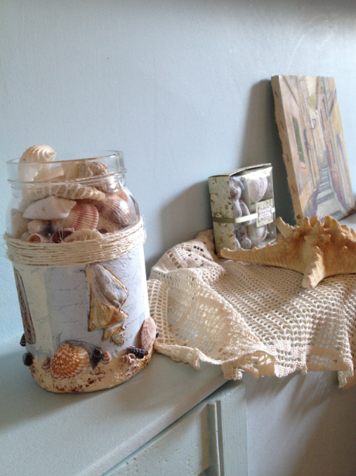 баночку делали сами с лизой, и салфетку мама вязала сама)) Картину позади рисовала моя сестренка средняя
