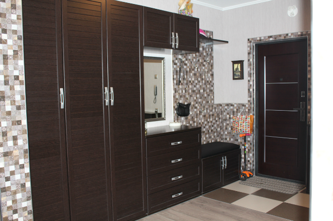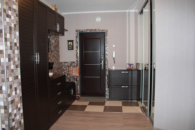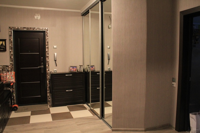 за шкаф купе отдельный плюс!! Молодцы, широкий такой! и угол скошен удачно, не биться об него)Парижские штучки понравились, особенно ключница! А вот обрыв мозайки в зоне над комодом чем обусловлен? Было бы здорово продлить горизонтальную линию справа от входной двери, чуть выступала бы над комодом))