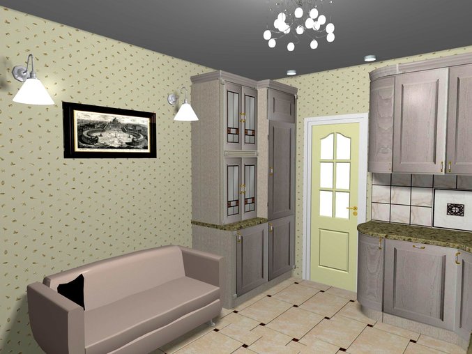 Хорошее вроде сочетание, но зелень не вяжется, да и тёмные полы съедят 10 м кухню.