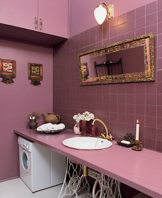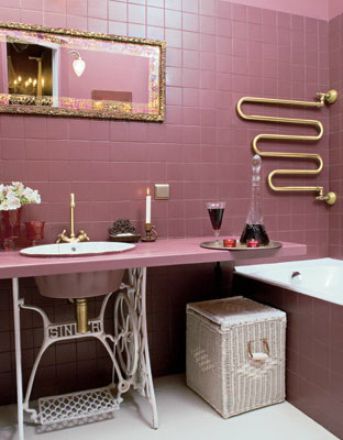 Интерьерное решение ванной комнатыКогда мы купили квартиру, я мечтала о такой ванной комнате. Я ее нарисовала, я подобрала все детали, я нашла старую машинку зингер, туалетный бачок под старину...потом я совершенно случайно, нарыла в интернете этот интерьер и он на 98% совпал с тем, что я готовила в своих планах. Но, муж был категоричеки против. И теперь у нас черно-белая ванная-кабинет в строгом стиле. Она мне очень нравится, и это любимое место в нашей квартире, но я с тоской иногда думаю, о том, какой она могла быть другой. Вот такой. Автора не знаю.