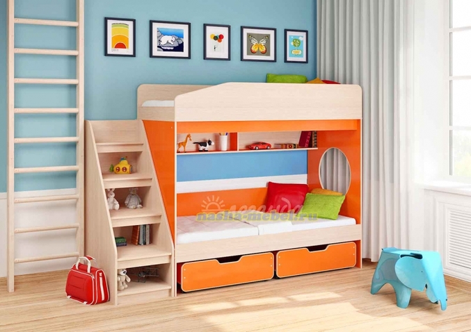 Интерьерное решение детской комнатыДевочки, поделитесь, у кого такая есть.как качество? Удобно ли деткам? хотим купить мальчикам своим.Хочу именно такую лестницу, как ступеньки и чтобы сбоку была.