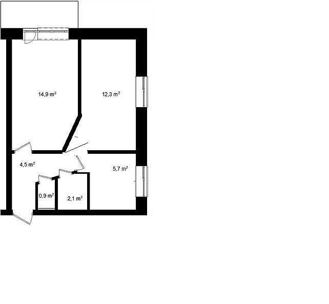 у моей тети такая квартира, она перенесла стену между кухней и маленькой комнатой к окну(увеличила кухню, а из маленькой комнаты сделала спальню себе.