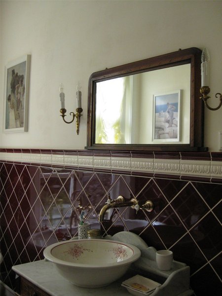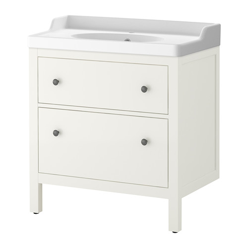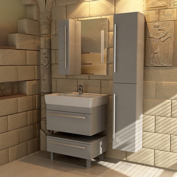 а вот так тебе не нравится? самую простую плитку на пол шахматкой, на стены белую и вот такую тумбу :)