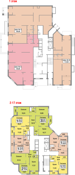 Второй вариант 12 этаж квартира 72,09 зеленая