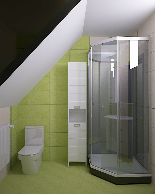для гостей обычно ставят душ, а для себя ванну, по моему не продумано...у нас например тоже мансарда и скосы , но ванна без проблем становится..тем более что у ва душ кабина встала , значит для ванны и подавно место есть..