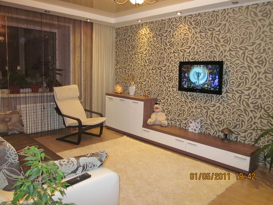 а мечталось так.. ссылка у кого взяла фото http://www.babyblog.ru/community/post/housedesign/1364383.У нас тоже подвесной потолок, только комната по-меньше. Мебель цвета венге.Вот что меня остановливает...у нас арочный вход и дверей нет, занавесили шторами,завтра попробую сфотографировать Со старыми обоями они меня устраивают, а вот что придумать к новым даже не знаю. Помогите,