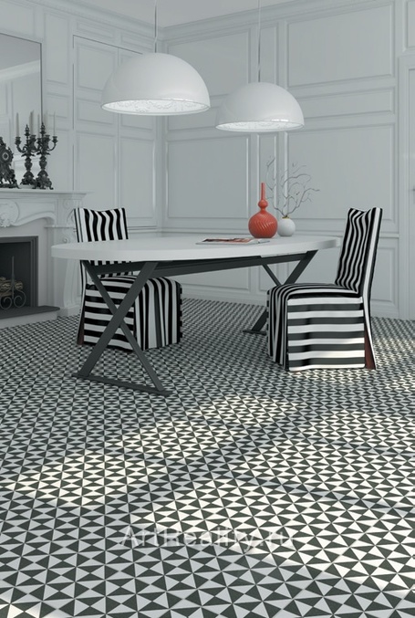 Досмотрелась:)))) теперь мне нравится плитка за 300 000 руб:)))) за кв.м)))Губа не дура:))Но я не о том, как думаешь теперь, все-таки что лучше взять на пол 1) этот наш рисуночек (твой))) серо-черные квадраты 2)  Получается, что тут и черненький наш есть и серый (или вот он голубой..??) и белый, а тк большее особо акцентов не будет, может эта будет лучше всего выделяться?И 3) Или это совсем будет сливаться наверно