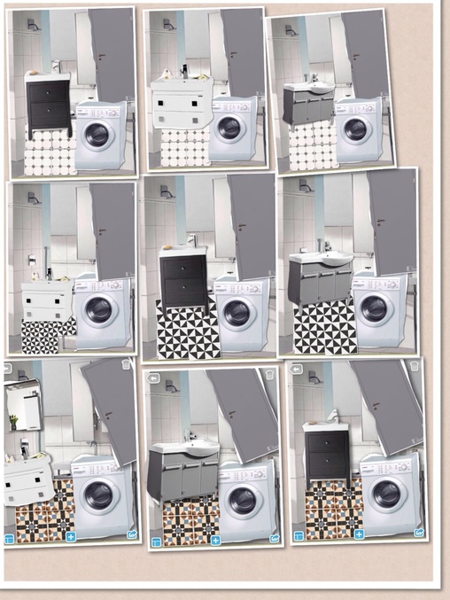 Ты не забывай еще про дверь серую:) а где этот коллажик можно сделать? Есть такая программа или только дизайнеры такую имеют:)?И по поводу белой машинки, плитка, ванна, сама раковина тоже белые, так что мне кажется, что в этом плане будет ничё:)