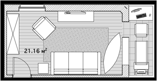 Пол и двери нам выдали за канву - это, увы, менять было нельзя. Чтобы как-то соединить их по цвету с ч/б интерьером, мы решили окрасить одну стену в кофейный цвет, и положить такого же оттенка ковер на пол. Получилось удачно: комната стала выглядеть "мягче" и уютнее.
