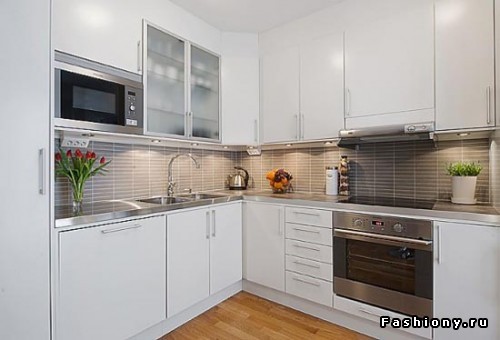 У моей тёти в частном доме был белый глянец и вся кухня казалась чистой. Намывали её мы с сёстрами двоюродными втроём)))