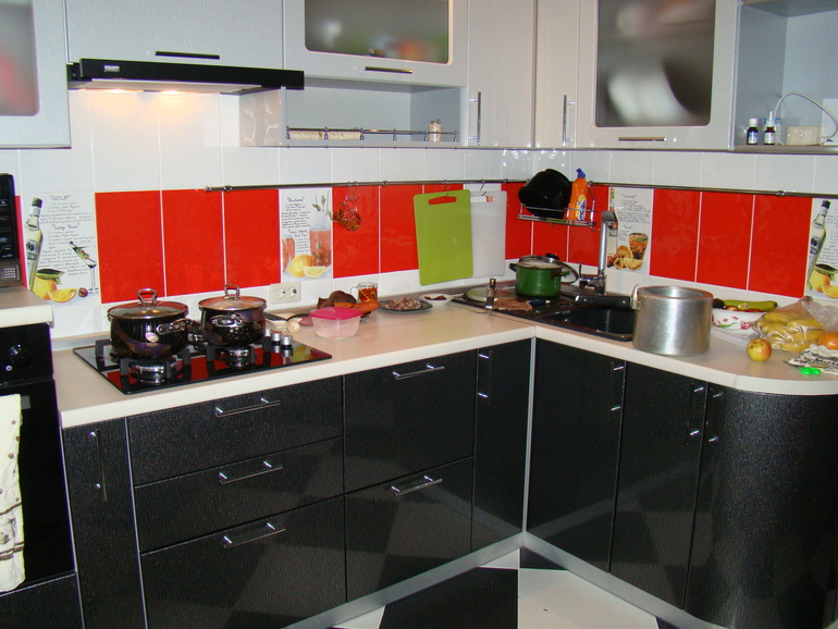 здесь вытяжка выдвинута, а так она практически незаметна (узенькая полосочка в тон к варочной поверхности). Да и еще плюс - это освещение над плитой