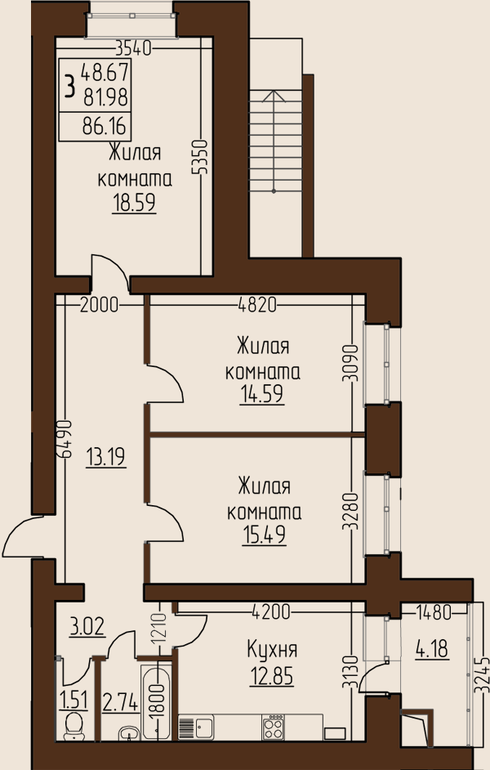 Перепланировки стен. Согласование перепланировки квартир и нежилых помещений.Имеем вот такую квартиру: