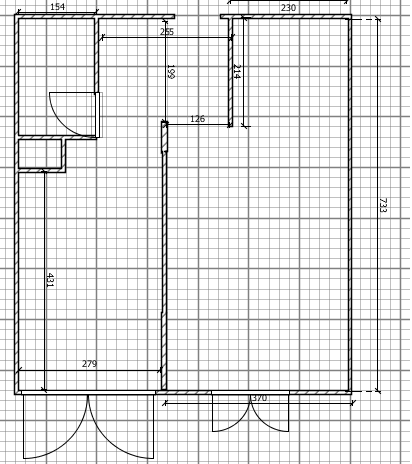 Вот план, размеры + - , там где короб на кухне - точно пока не знаю его рамеры.