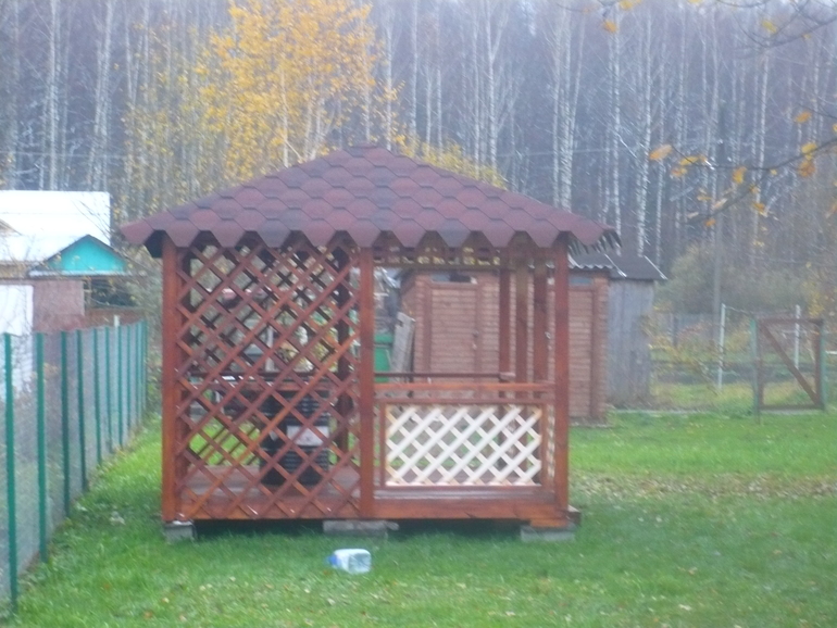 Беседки могут быть любой формы - круглые, квадратные, многоугольные и даже треугольные, с полом, открытые и застекленные. При проектировании беседок важно проявить фантазию и тогда она станет настоящим украшением вашего участка.