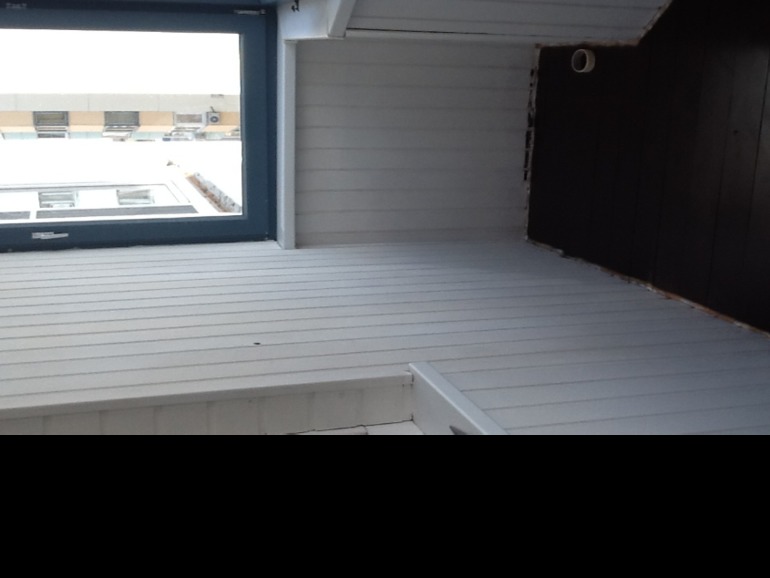 На стенах и потолке: белая фасадная матовая краска.