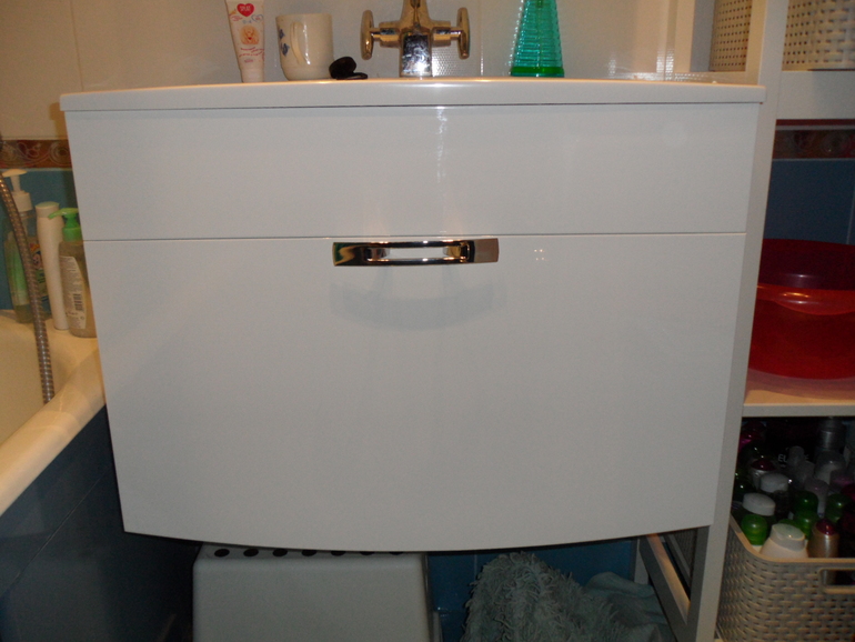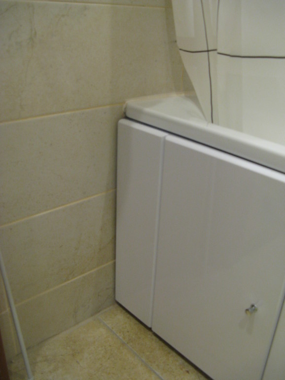 Заказала ее, глядя лишь на фото ,в инет магазине. Когда стали класть, я чуть в обморок не упала, такая она мне показалась страшная, грязно-желтая, даже как будто пятна плесени на ней проступают. Предложила мужу ее заменить,но он меня сильно не понял) Ну ладно, раз Япония на стенах у нас, заказала мебель Токио от Бриклаер. И купила занавеску, которая напоминает мне японскую ширму.Аксессуары (вешалки, мыльницу) и полотенцесушитель прямоугольно-квадратные. Когда все встало на свои места, комнатка стала очень даже ничего...на мой вкус)) Я довольна. Только пока так и не поменяли огромный кран на ванне, и не повесили крепление для душа,надо это сделать срочно. Кстати..про ванну. Долго выбирали, хотели чугунную рока. Отзывы мне не понравились, не хотелось трястись над ее эмалью, которая, оказывается, очень тонкая.. По отзывам на ББ выбрала Калдевей саниформ- стальную. Супер. Не тонкая, не гремит, не холодит, не боится кислот , ударопрочная. Поверхность ровная, гладкая. В этой серии есть еще опция Pearl-грязеотталкивающее покрытие, капли скатываются, но она и без него моется отлично. Единственный минус-она меньше нашей старой из чугуна, немного уже и мельче, но они кажется все такие в этой категории