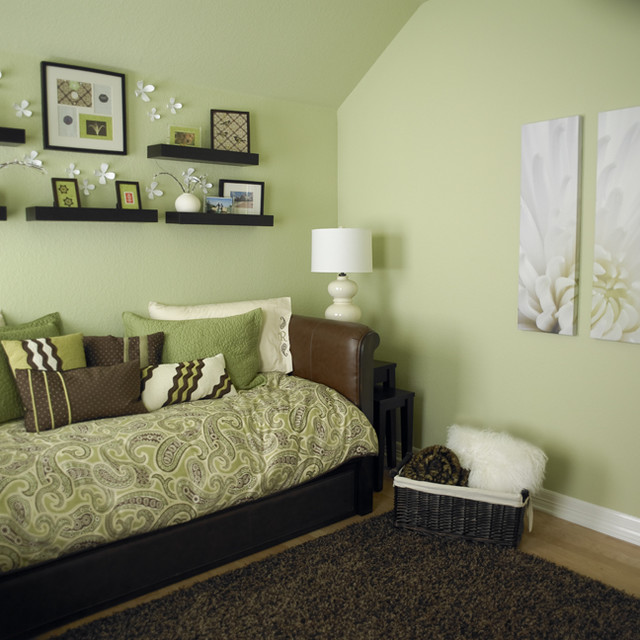 А чтобы не было перебора, то на обе стены поместить одинаковые бежевые подушки, можно в ненавязчивую клетку. Их всегда будет проще всего разбавить яркими или по настроению.
