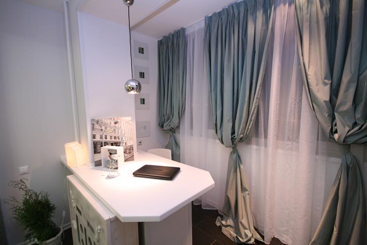 Подскажите, как можно оформить проем, где пока временно висит тюль. Сейчас там стоит парта и стеллаж: