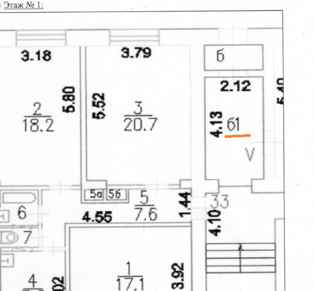 Нашла кадастровый паспорт 1го этажа. Эта комната на плане "б1", получается размер 4,13х2,12м. Но колясочная есть около лифта. Соседи там поставили решетку и хранятся в основном велосипеды.