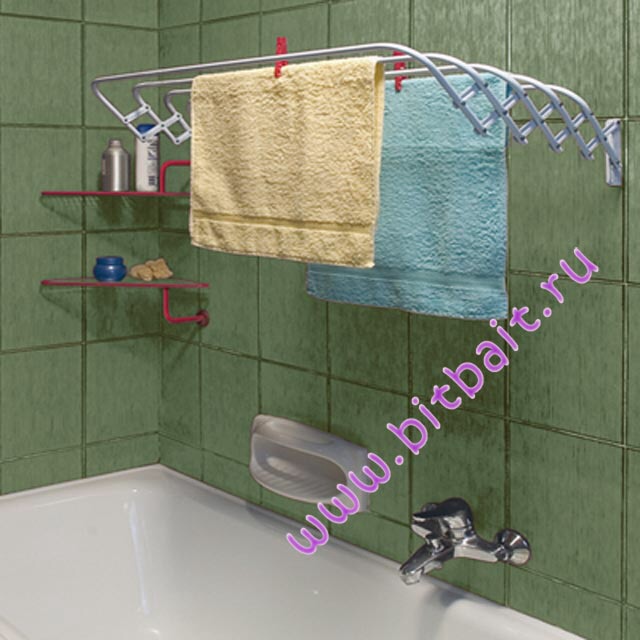 Я не решилась портить новую ванную,повесили полотенцесушитель с полкой,а сушку на балконе.Неудобно,однако